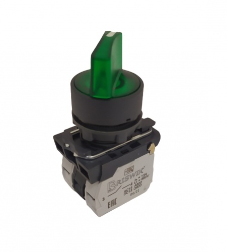 Переключатель Briswik КПЕ 3101 -РЛ 220В зеленый IP40 УХЛ3 10А 0но+1нз | код aB-SB-0Ai-7312 | Briswik