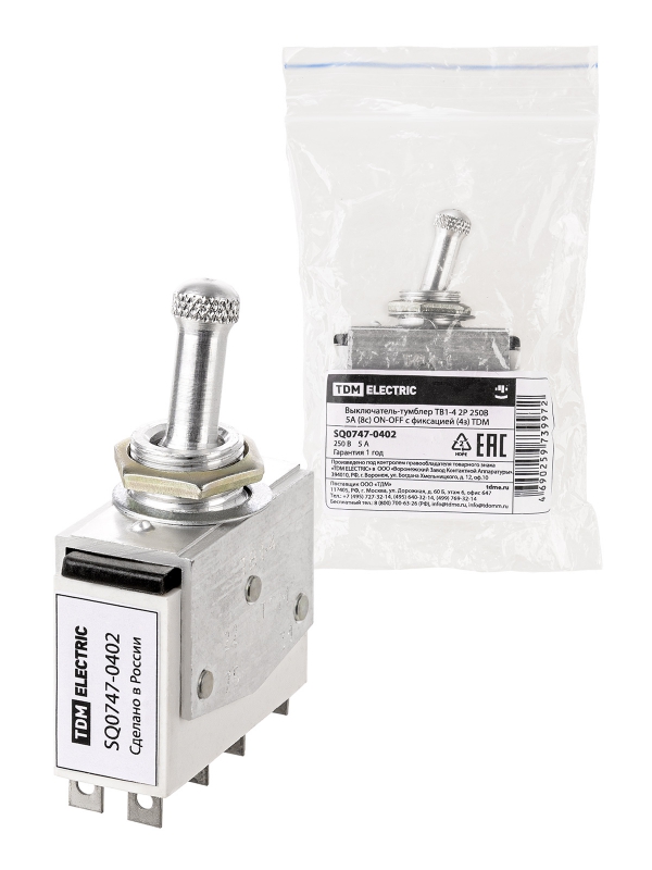 Выключатель-тумблер ТВ1-4 2P 250 В 5 А (8c) ON-OFF с фиксацией (4з) TDM | код SQ0747-0402 | TDM