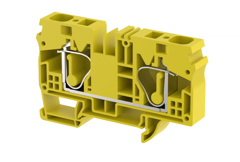 Клемма проходная пружинная 16 мм2, на 2 подключения, желтая SQ16-YELLOW | код 2106010004 | Elmex