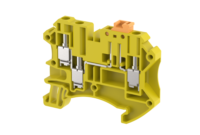 Клемма проходная винтовая 4 мм2, с размыкателем, на 3 подключения, желтая TQK4-1X2-YELLOW | код 1203140004 | Elmex