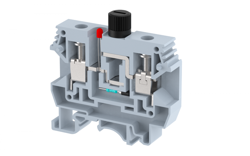 Клемма проходная винтовая 10 мм2 под предохранитель, на 2 подключения, со светодиодом 220V AC, красная KUF10A2-R | код 1105262702 | Elmex