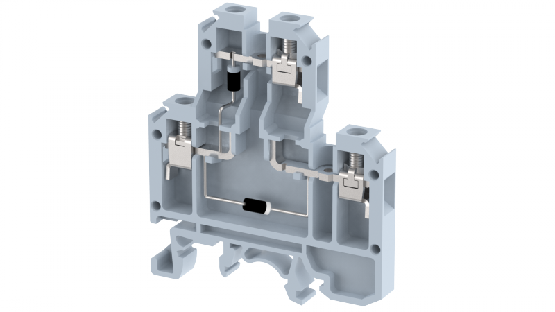 Клемма проходная винтовая с электронными компонентами 2,5 мм2, двухуровневая, 2 диода 1N 4007 с общим анодом, на 3 подключения, зеленая KUDD4CA2_MT617B(GR) | код 1102520343 | Elmex