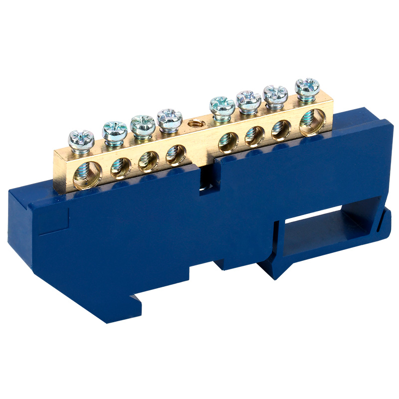 Шина N нулевая с синим изолятором на DIN-рейку 6x9 мм стойка бол. 8 групп REXANT | код 11-2340 | REXANT