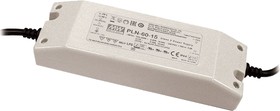 Источник питания AC-DC, 60Вт, IP64, вход 90…264В AC, 47…63Гц , ККМ, выход 20В рег.-15%/3A, рег. 3...-25%, изоляция 4250В AC, в кожухе 180х62,5х35мм, -30…+50С | код PLN-60-20 | MeanWell