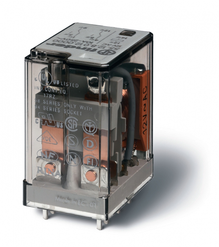 Миниатюрное универсальное электромеханическое реле, монтаж на печатную плату, 2CO 10A, контакты AgNi, катушка 115В АC, степень защиты RTI, опции: нет | код 551281150000 | FINDER