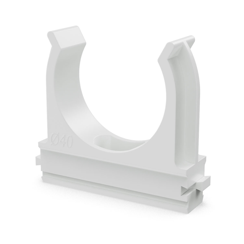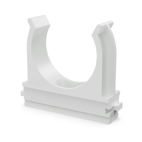 Крепёж-клипса для труб Полистирол белая d40 мм (15шт/300шт уп/кор) Промрукав | код PR.02740б | ПРОМРУКАВ