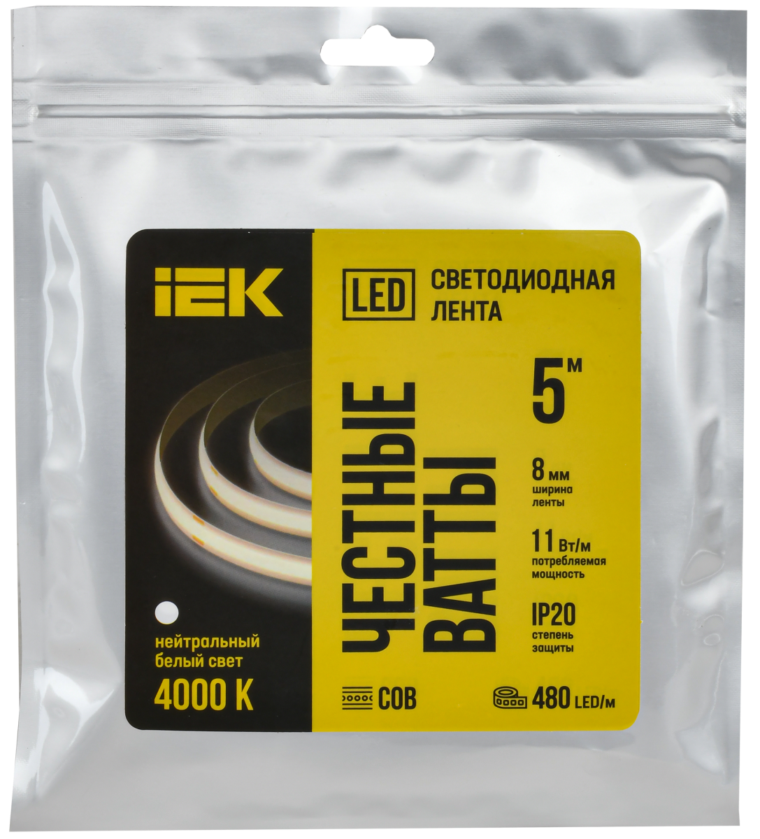 Лента LED 5м COB-312LED 8Вт/м IP20 8мм 24В 4000К IEK | код LSR11-10-312-20-1-05 | IEK