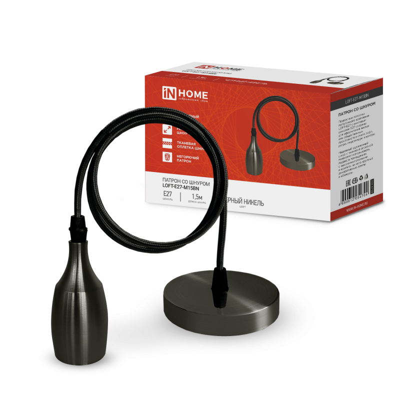 Патрон LOFT-Е27-M15SC со шнуром 1,5м сатин хром IN HOME | код 4690612054636 | IN HOME