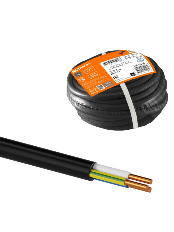 Кабель ВВГнг(А)-LS 3х2.5 ок(N. PE)-0.66 ГОСТ (бухта 10м) | код SQ0117-0436 | РЭМЗ ТМ