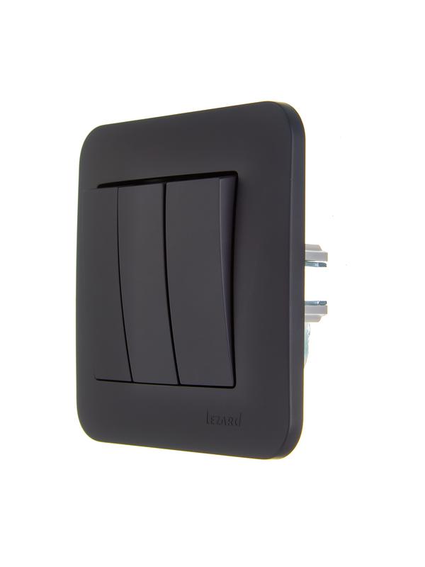 Выключатель 3-кл. 1п СП ASTI 10А IP20 в сборе черн. бархат LEZARD 7081-4242-109