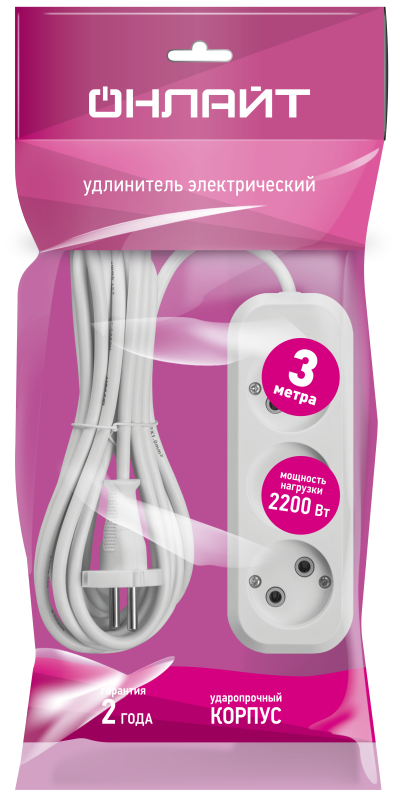 Удлинитель 3х3м без заземл. 10А IP20 90508 OPE-S-03-300-X-2х1 ОНЛАЙТ 90508