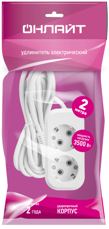 Удлинитель 2х2м с заземл. 16А IP20 90512 OPE-S-02-200-Е-3х1 ОНЛАЙТ 90512