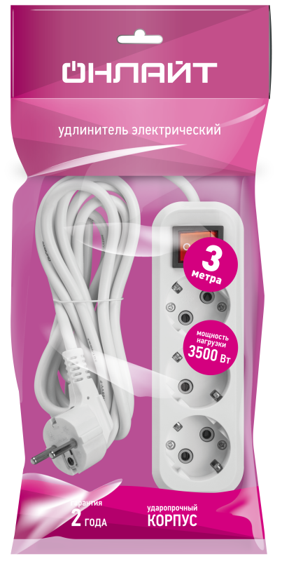 Удлинитель 3х3м с заземл. 16А IP20 90523 OPE-S-03-300-ЕSC-3х1 ОНЛАЙТ 90523