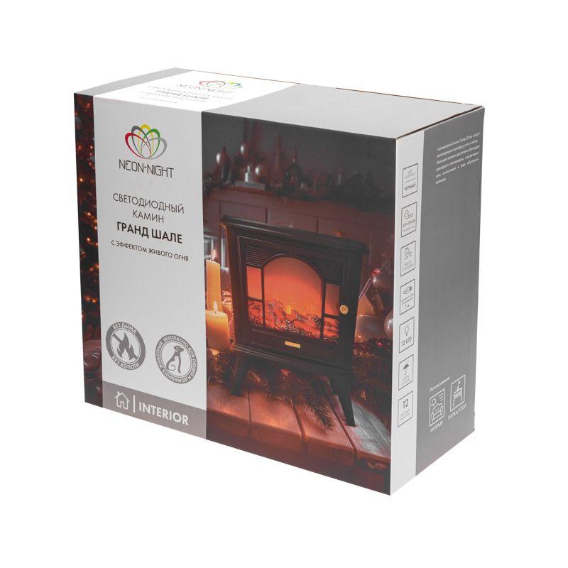 Камин светодиодный "Гранд Шале" с эффектом живого огня 45х18х56см работает от батареек 3хС (в комплект не входят) или от USB (в комплекте) черн. Neon-Night 511-024