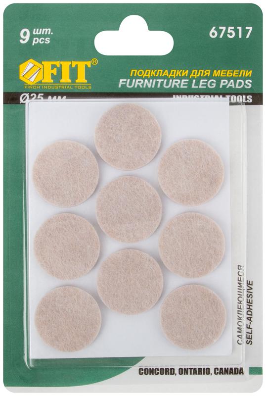 Подкладка для мебели самоклеющиеся круглые 25мм войлок (уп.9шт) FIT 67517