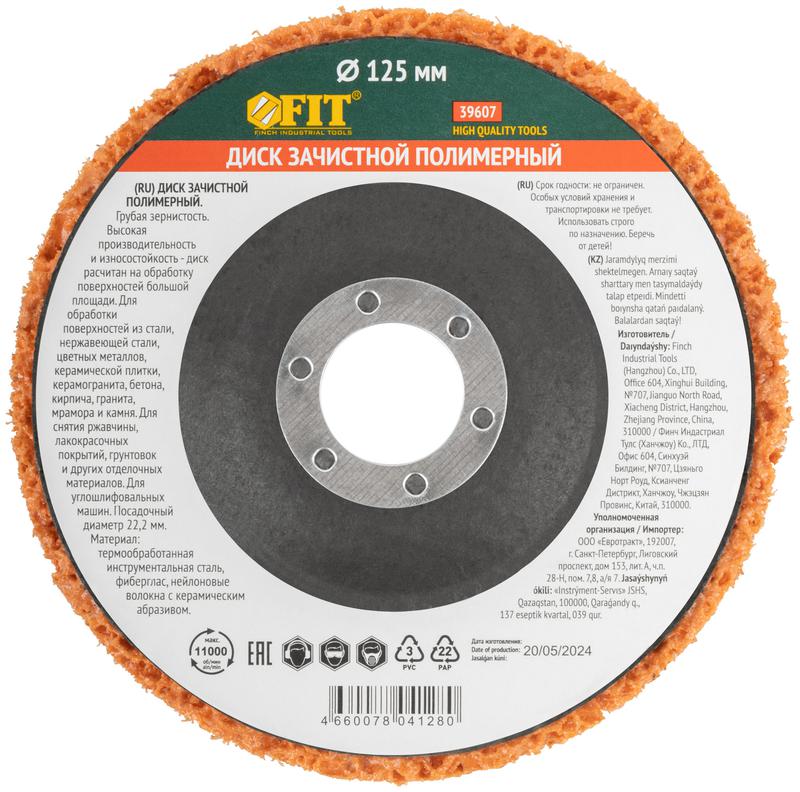 Диск зачистной полимерный керамический абразив посадочный диаметр 22.2мм 125мм FIT 39607