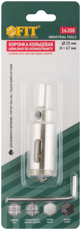 Коронка кольцевая по керамограниту камню и кафелю алмазная с центровочным сверлом 20х70мм FIT 16208