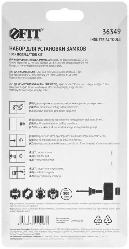 Сверло наборное для замков набор 3шт (22/54мм) FIT 36349
