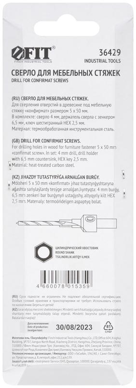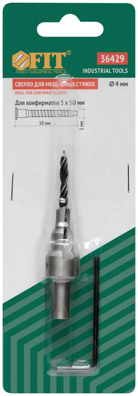 Сверло с зенкером для мебельных стяжек 4мм/зенкер 6.5мм (для стяжки 5х50) FIT 36429