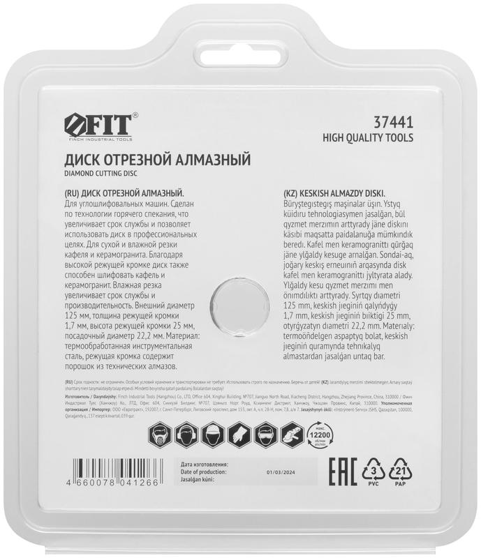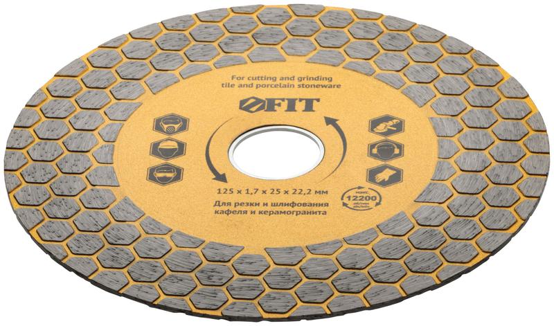 Диск отрезной/шлифовальный алмазный 125х1.7х25х22.2мм сухая и влажная резка FIT 37441