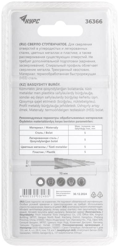 Сверло по металлу ступенчатое 4-20мм 9 ступеней спиральный профиль HSS КУРС 36366