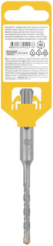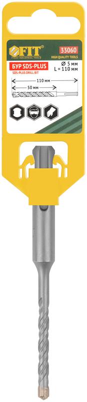 Бур по бетону SDS-PLUS профи крестообразная вставка двойная спираль 5х110мм FIT 33060