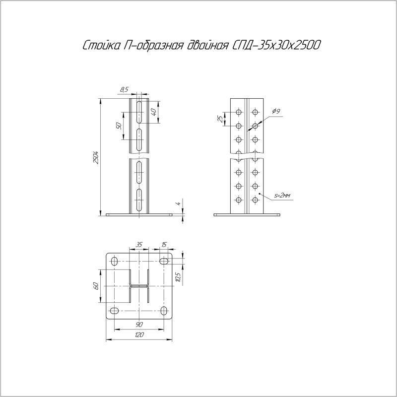 Стойка П-образная 35х30 L2500 2мм СП Промрукав PR08.2619