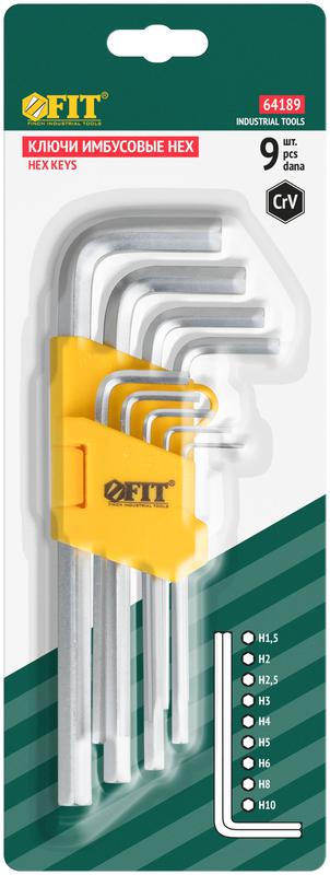 Ключ шестигранный 1.5-10мм длинный в пластик. держателе CrV сталь (уп.9шт) FIT 64189