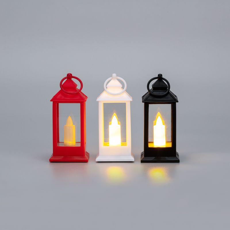 Фонарь декоративный (фигура) 5.5х5.5х12.5см тепл. бел. со свечкой 3хLR1130 (в комплекте) корпус бел./красн./черн. Neon-Night 513-068