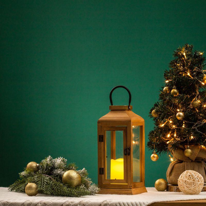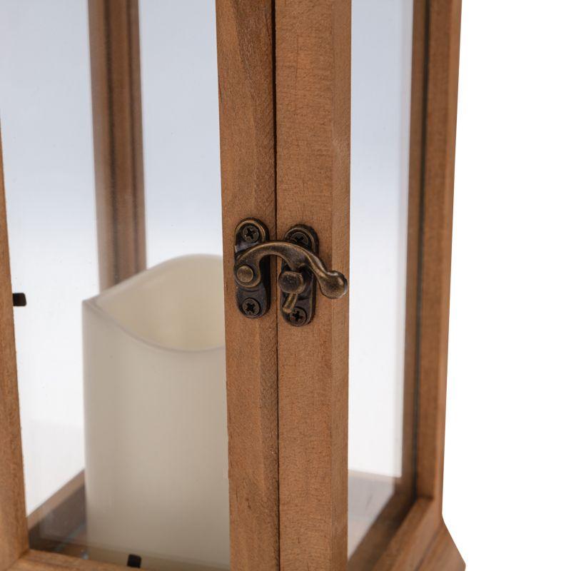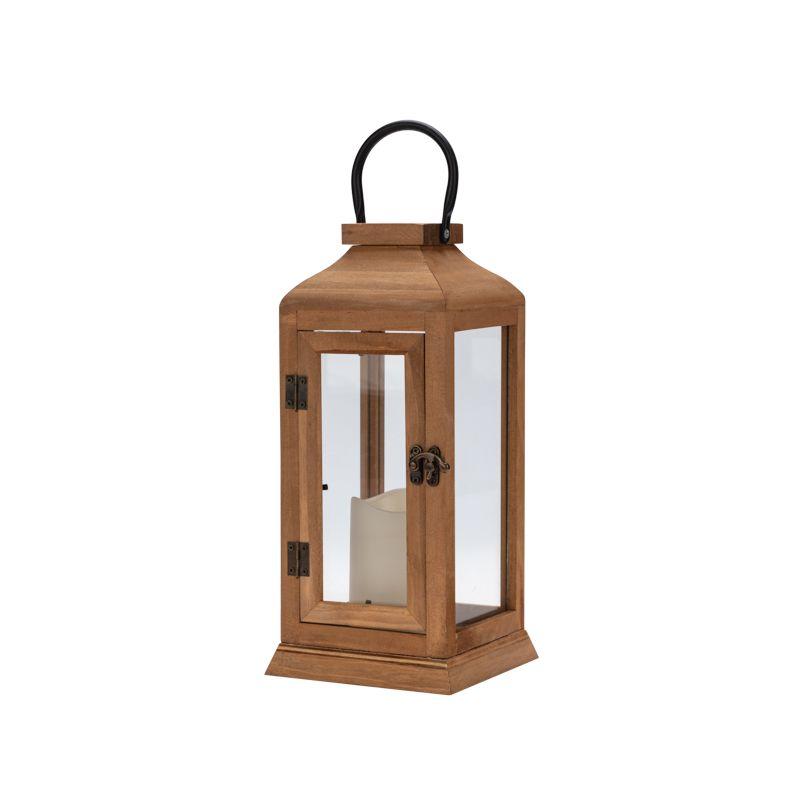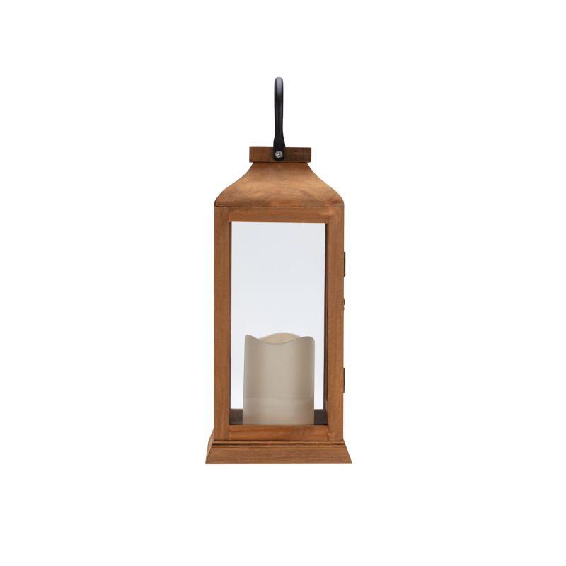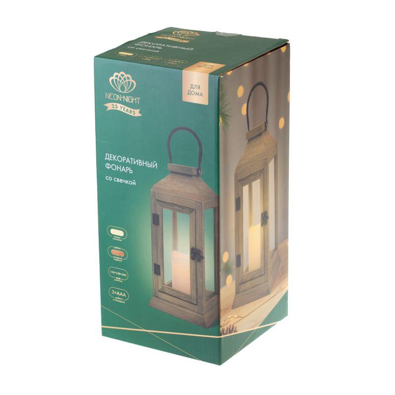 Фонарь декоративный 15х15х38см тепл. бел. со свечкой корпус из дерева корич. Neon-Night 513-074