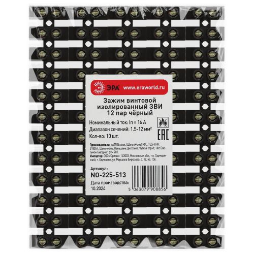Зажим винтовой изолированный ЗВИ-нг 16А 1.5-12кв.мм 12 пар черн. NO-225-513 Эра Б0068027